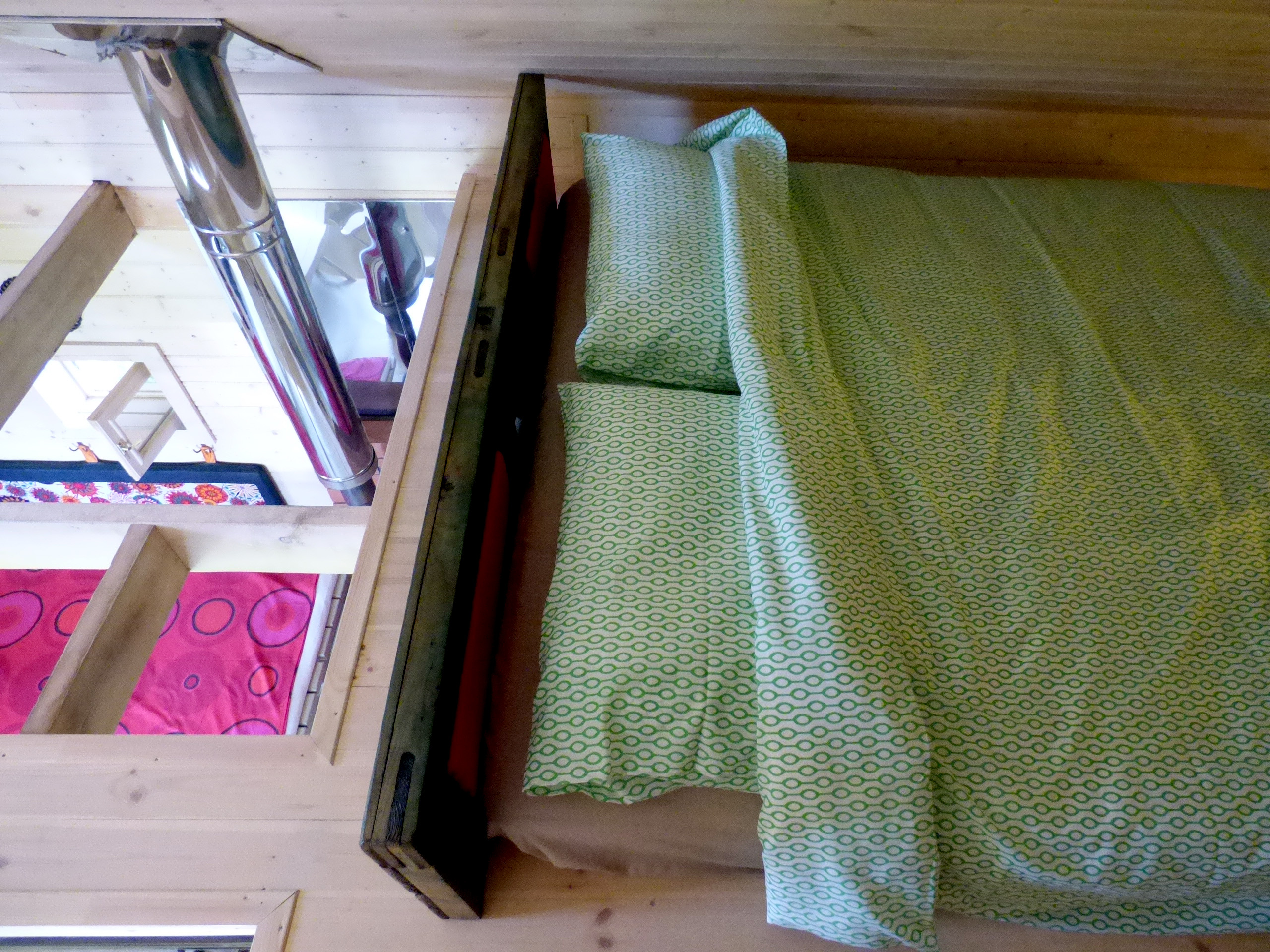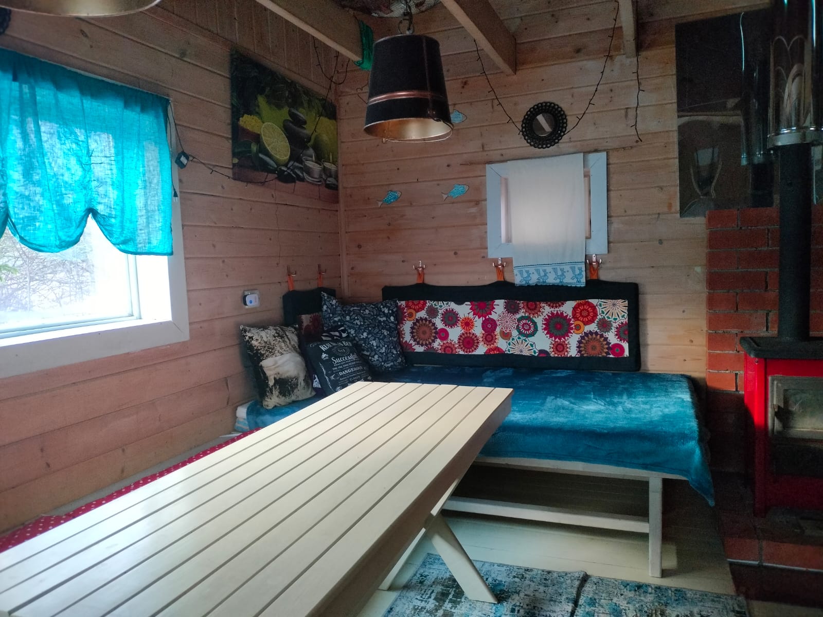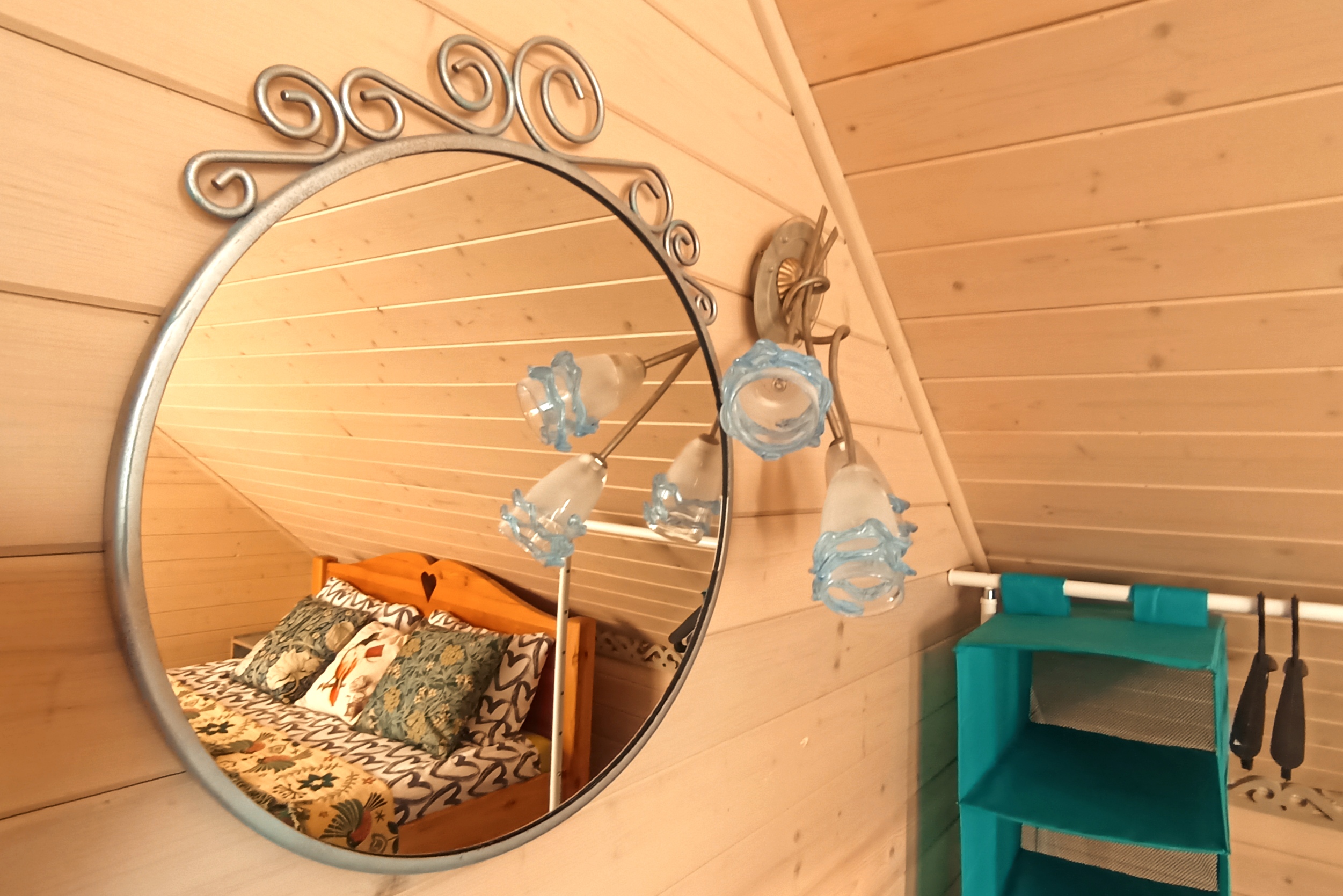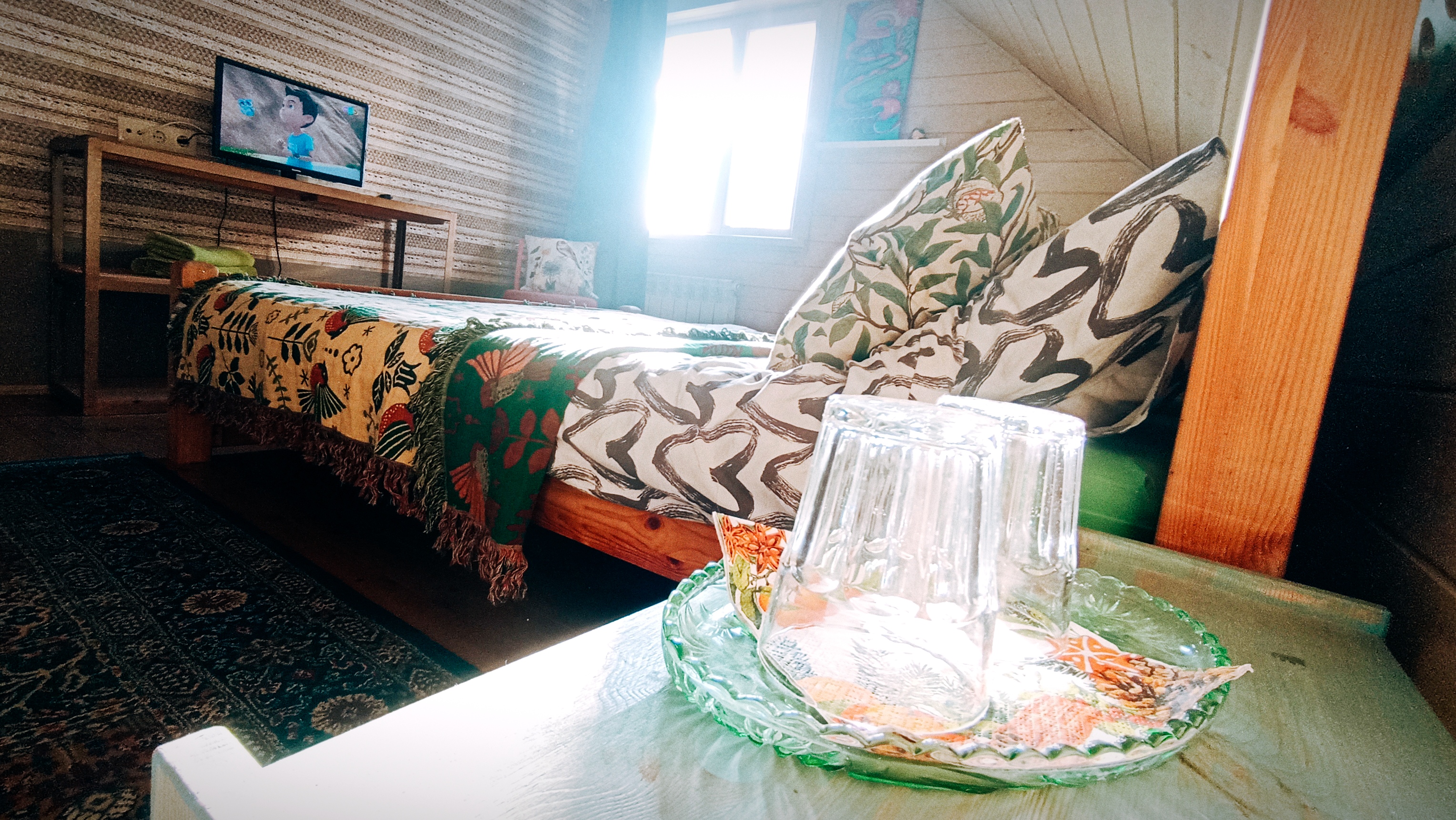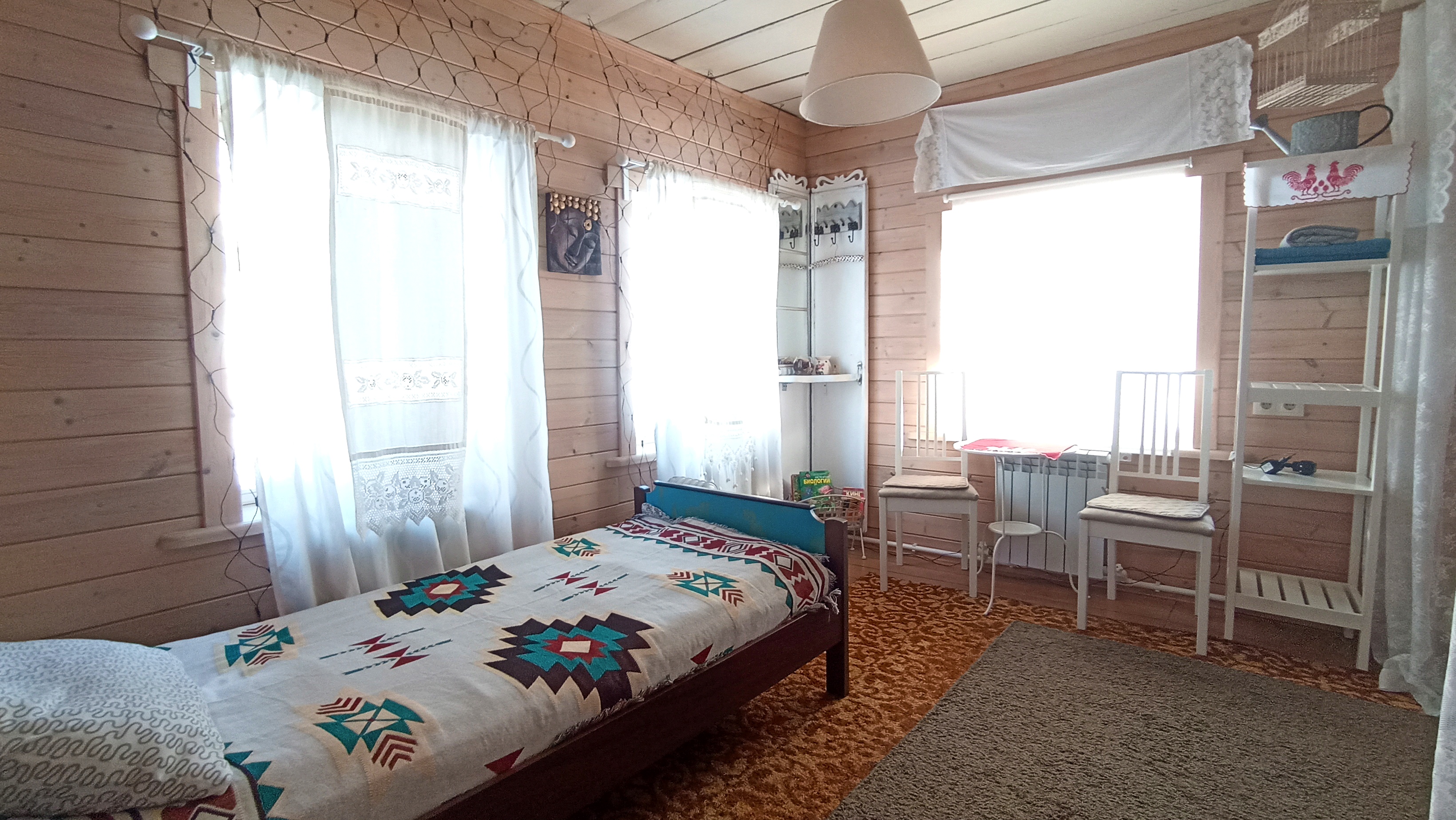 Уютный и симпатичный четырехместный номер в мансарде оформлен в светлых тонах с добавлением ярких освежающих акцентов, поднимающих настроение. Элементы декора - текстиль, светильники, предметы интерьера - не оставят вас равнодушными! Расположение кроватей зеркально по отношению к перегородке в изголовье, создает необычное ощущение Зазеркалья, а также дает возможность спать, не мешая друг другу. Номер оборудован телевизором с плоским экраном и небольшим холодильником. Наличие нескольких источников освещения поможет настроить особую световую атмосферу. Собственная ванная комната с мансардным окошком напротив душа способствует водным процедурам на свежем воздухе! Окна выходят на сельскую улицу с домиками с оригинальными наличниками и храм. Свежее постельное белье и полотенца. Завтрак и пользование всем необходимым в общей кухне-столовой на первом этаже. Кофе, чай в любое время бесплатно. Питьевая вода. Гостиная с телевизором и музыкальными колонками. Веранды и крытая зона барбекю с мебелью также общего пользования. Мангалы, казан, решетки и шампуры бесплатно. Остальное ваше. Бронирование после подтверждения дат по телефону (whatsapp), указанному на сайте и оплаты 50 % общей суммы проживания. Бесплатная отмена бронирования за 7 суток до заезда. Ранний заезд и поздний выезд (300 р./час) возможны при наличии возможности и при своевременной договоренности.