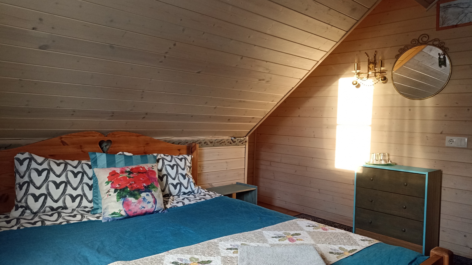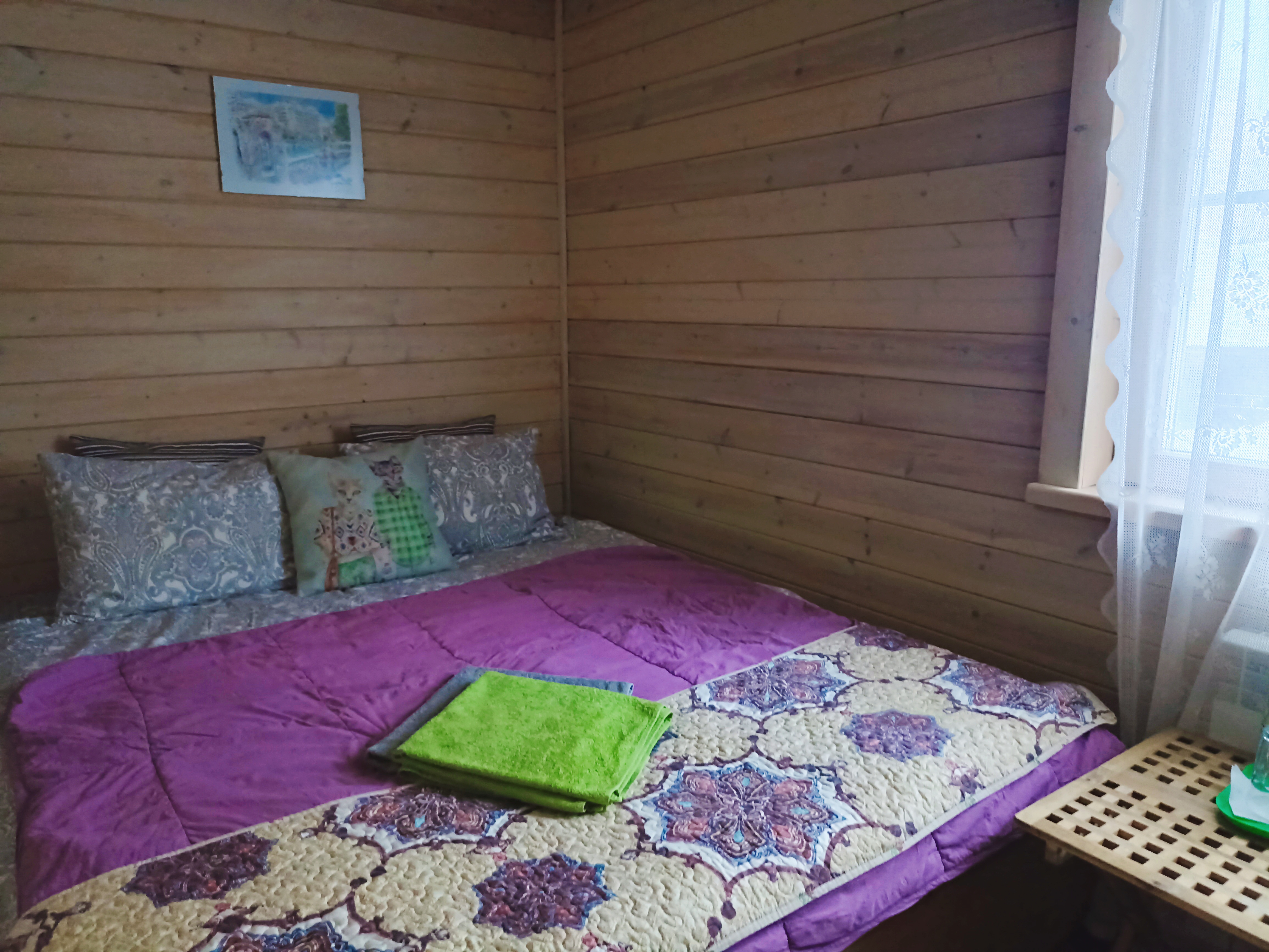 Сон в деревянной мансарде дома под звездами в окошке над кроватью - что может быть романтичнее! Спокойный сон в тишине деревенской глубинки - это то, что ценят наши гости и чем гордимся мы! Номер небольшой по площади, но очень уютный и удобный. Есть вся необходимая мебель. Телевизор с плоским экраном. Большое зеркало. Приятный рукотворный декор. Собственная ванная комната с душем, туалетом и раковиной внутри. Всегда свежее белье и полотенца. Домашний горячий завтрак и пользование кухней, а также чай, кофе в любое время суток входят в стоимость. Питьевая вода. Гостиная с телевизором и музыкальными колонками. Веранды и крытая зона барбекю с мебелью также общего пользования. Мангалы, казан, решетки и шампуры бесплатно. Остальное ваше. Бронирование после подтверждения дат по телефону (whatsapp), указанному на сайте и оплаты 50 % общей суммы проживания. Бесплатная отмена бронирования за 7 суток до заезда. Ранний заезд и поздний выезд (300 р./час) возможны при наличии возможности и при своевременной договоренности.