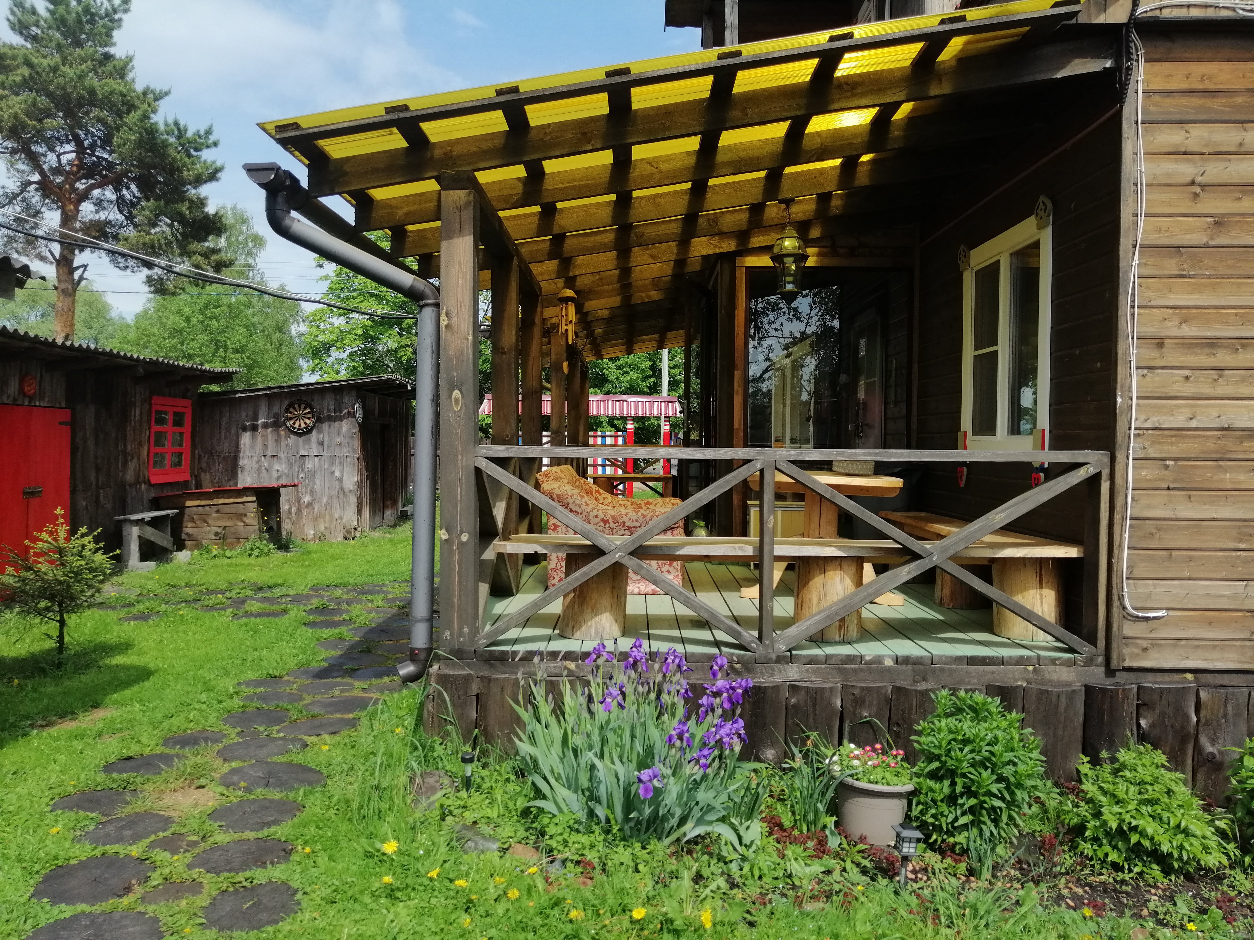 Веранды и крытая зона барбекю на территории - общего пользования. Мангалы, казан, решетки и шампуры бесплатно.