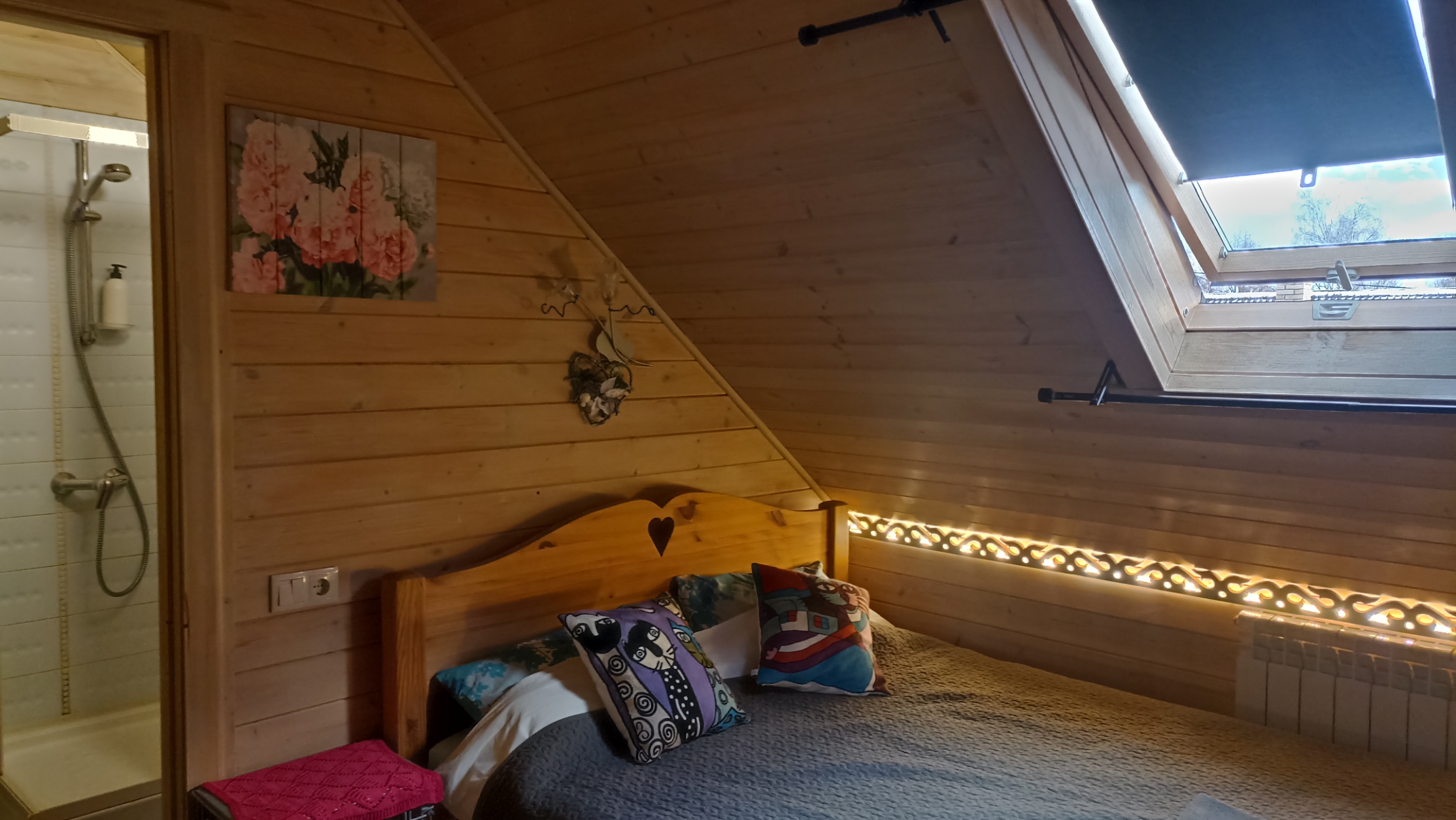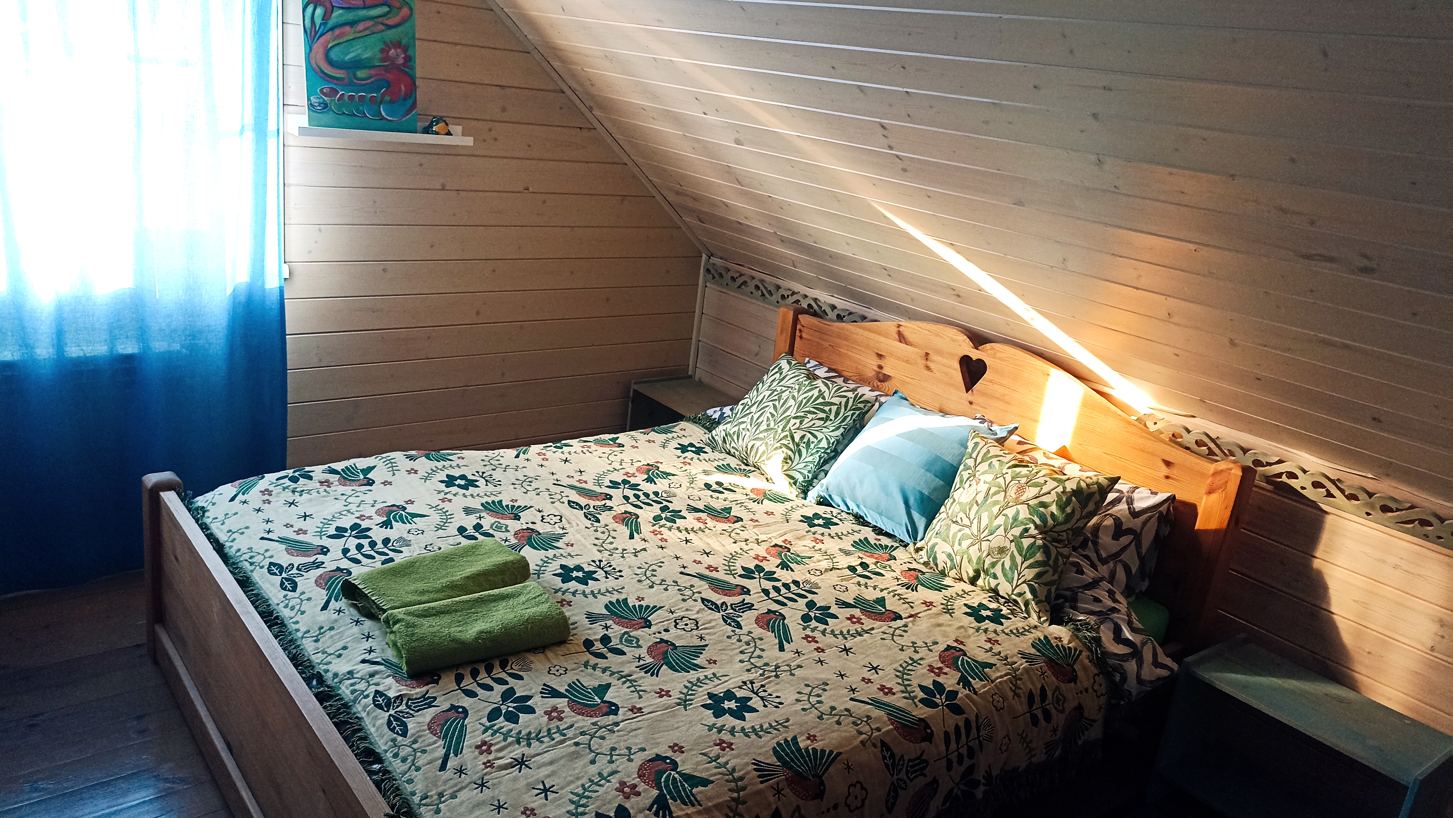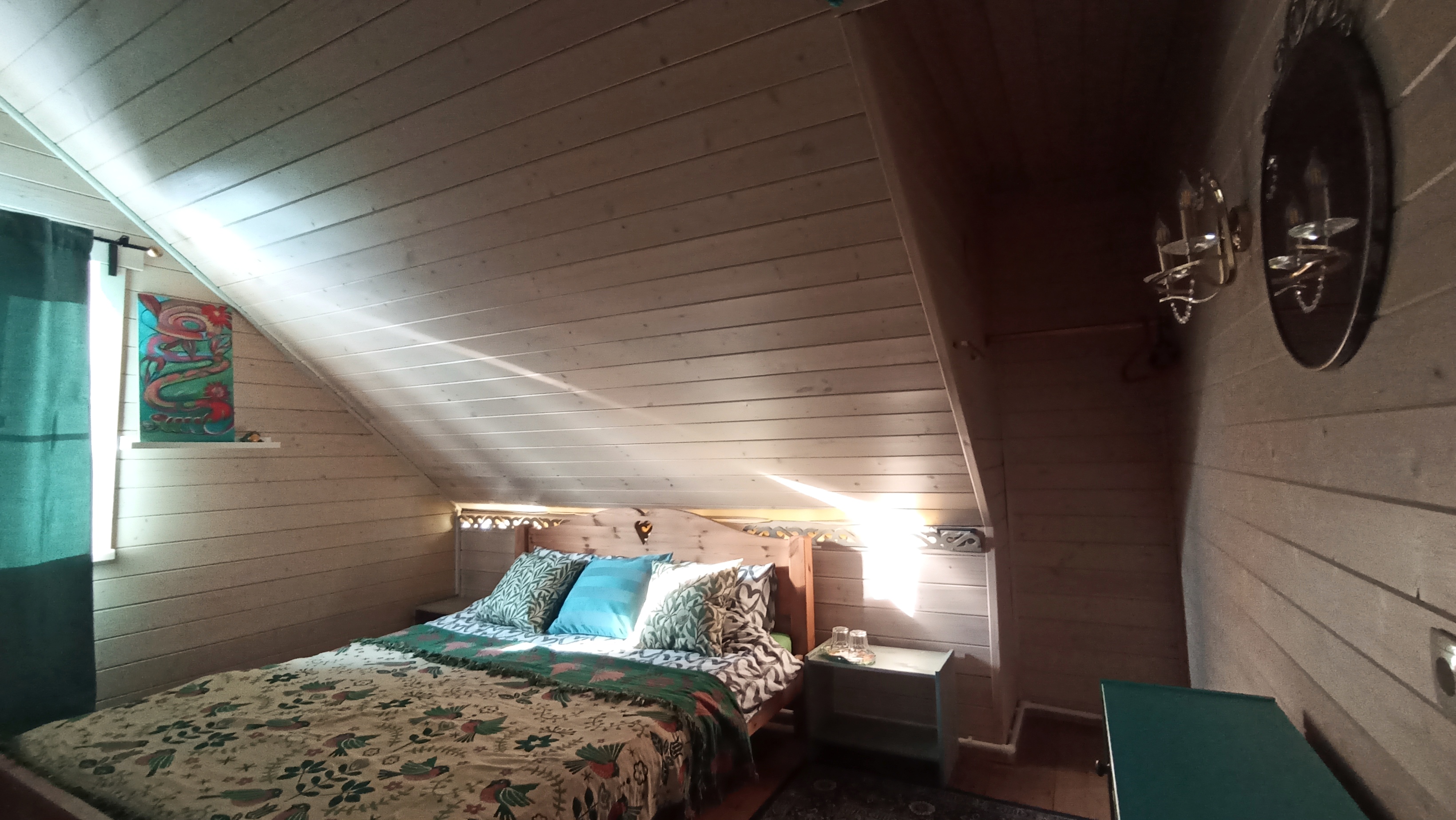 Сон в деревянной мансарде дома под звездами в окошке над кроватью - что может быть романтичнее! Спокойный сон в тишине деревенской глубинки - это то, что ценят наши гости и чем гордимся мы! Номер небольшой по площади, но очень уютный и удобный. Есть вся необходимая мебель. Телевизор с плоским экраном. Большое зеркало. Приятный рукотворный декор. Собственная ванная комната с душем, туалетом и раковиной внутри. Всегда свежее белье и полотенца. Домашний горячий завтрак и пользование кухней, а также чай, кофе в любое время суток входят в стоимость. Питьевая вода. Гостиная с телевизором и акустикой. Веранды и крытая зона барбекю с мебелью также общего пользования. Мангалы, казан, решетки и шампуры бесплатно. Остальное ваше. Бронирование после подтверждения дат по телефону (whatsapp), указанному на сайте и оплаты 50 % общей суммы проживания. Бесплатная отмена бронирования за 7 суток до заезда. Ранний заезд и поздний выезд (300 р./час) возможны при наличии возможности и при своевременной договоренности.